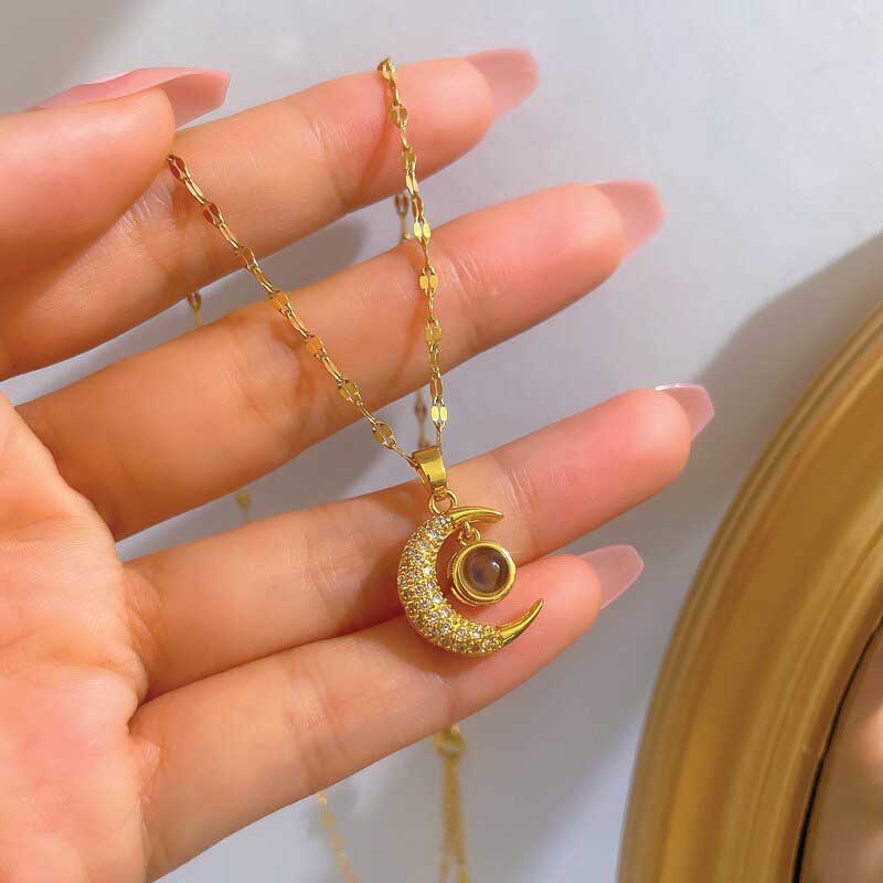 Este colgante en forma de luna representa cariño, protección y conexión profunda. Su diseño delicado y elegante lo convierte en un detalle simbólico, perfecto para expresar sentimientos de una forma bonita y especial.