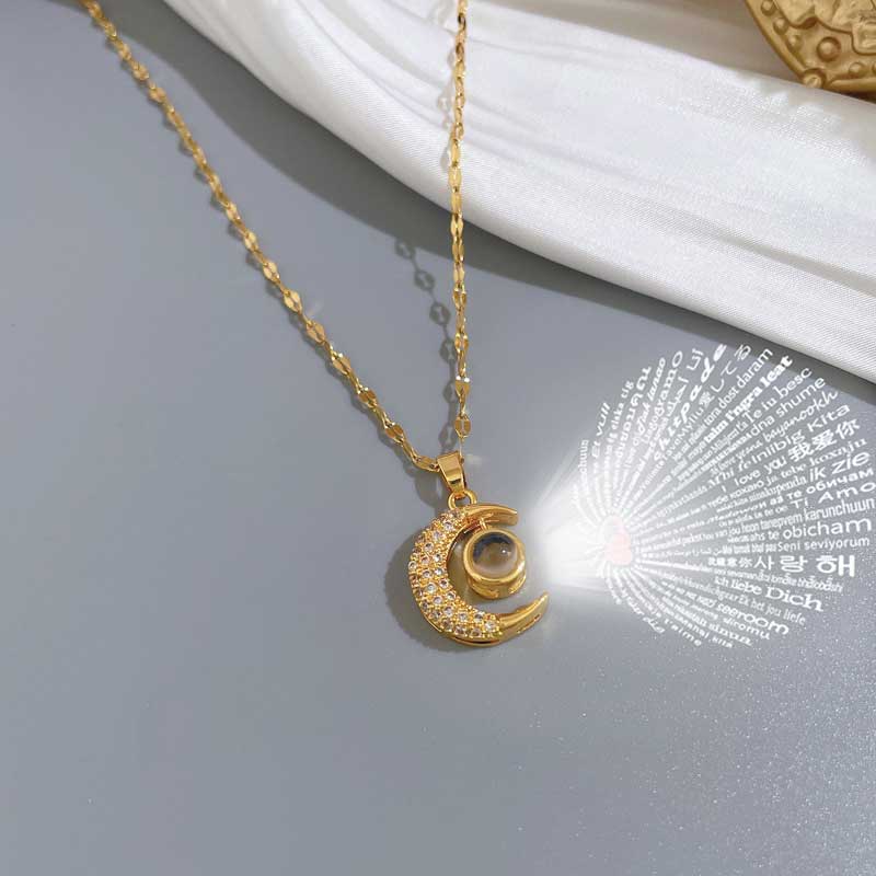 Al iluminar el centro del colgante, aparece la frase “Te amo” en 100 idiomas. Un microproyector oculto crea un detalle sorprendente y único, convirtiendo una joya bonita en un recuerdo inolvidable.